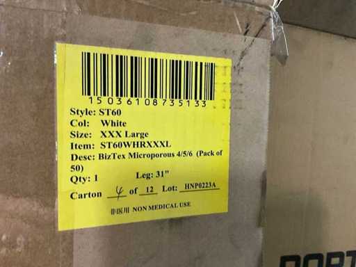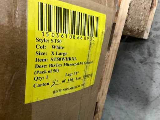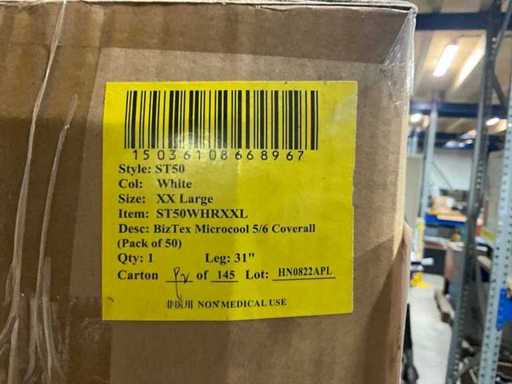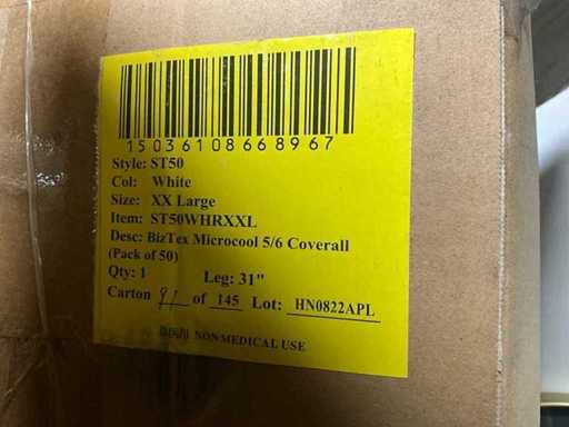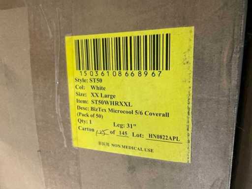 Model ST50 and model ST60, sizes xxxl, xxl, xl, consisting of 20 boxes with approximately 50 overalls per box.
