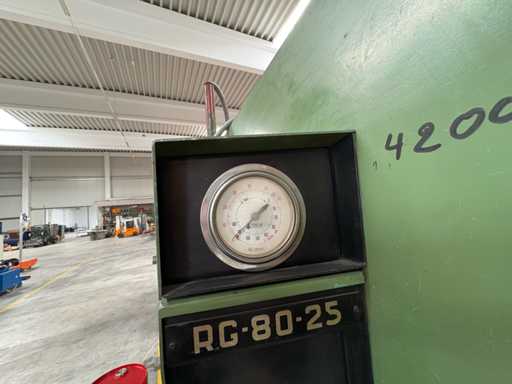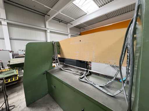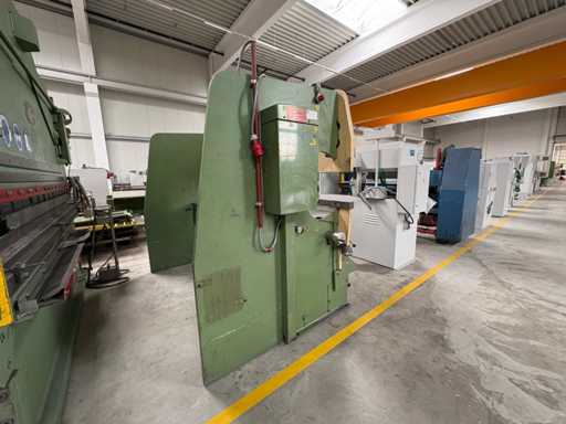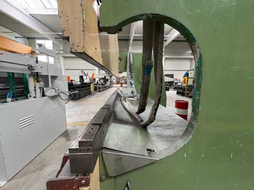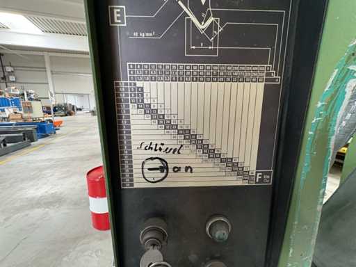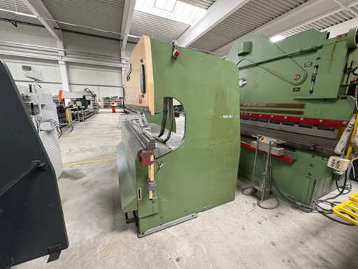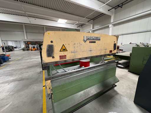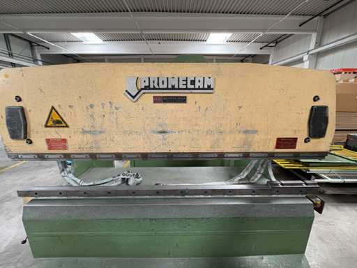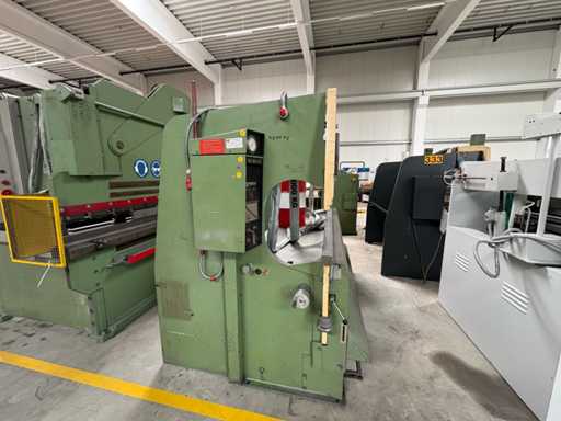 For sale is a classic hydraulic press brake from the well-known manufacturer PROMECAM, model RG 50-20, built in 1971, with a maximum press force of 50 tons and a bending length of 2000 mm. This machine is ideal for precise sheet metal bending work with medium material thicknesses.