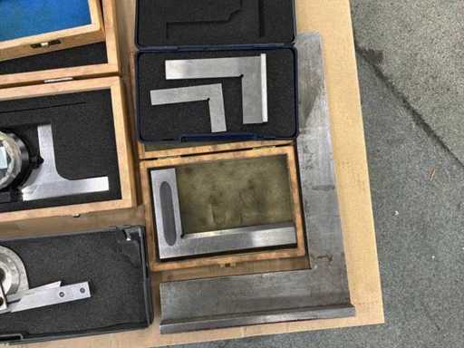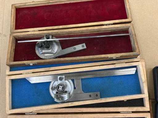 Various protractors and squares.