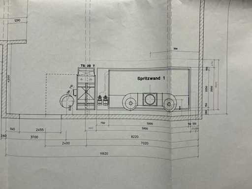 RIPPERT RWS 5000 N spraying system including paint supply & paint booth, sprinkled with water (2010)