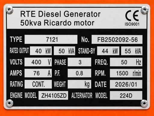 RTE - 2026 - 7121 - 50kva emergency power generator 400V