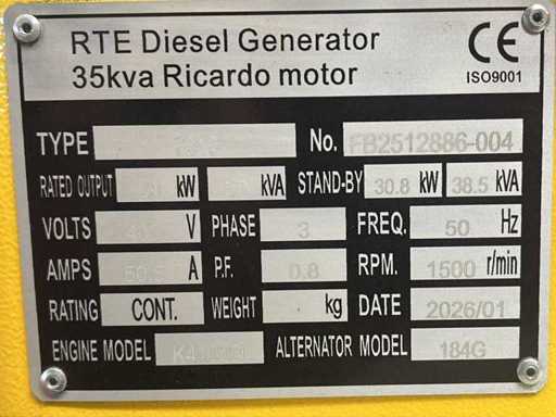 RTE - 2026 - 7310 - 35 KVA Emergency Power Generator 400V