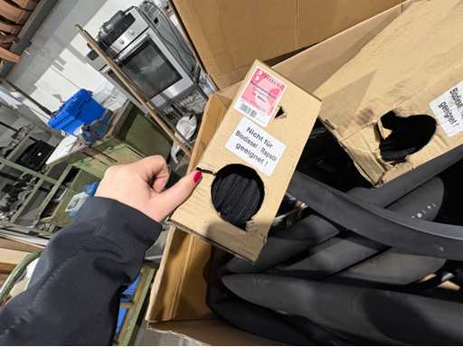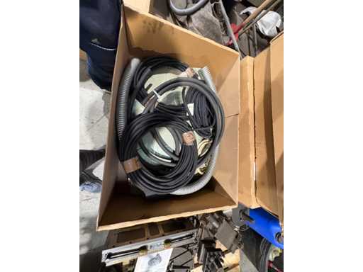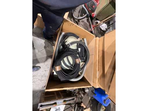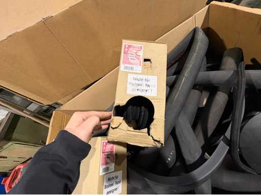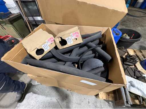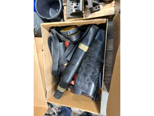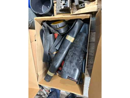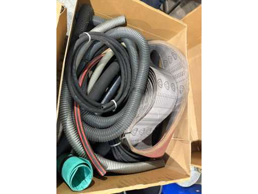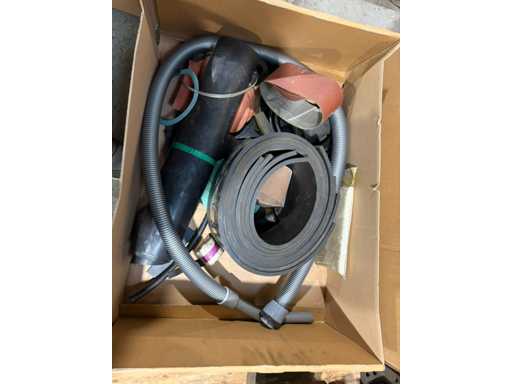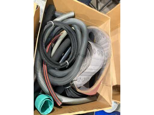Box with hoses, rubber strips and sanding belts