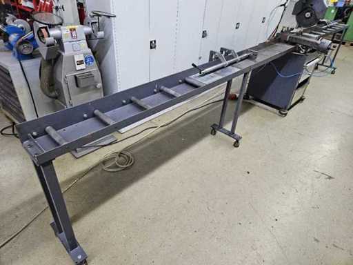 Semi-Automatic Vertical Metal Circular Saw Manufacturer: Rurack Type: VS 350 HA Year of Make: 1997 Saw blade diameter: 350 mm Saw blade dimensions: 350 × 3.0 × 40 mm Saw blade speeds: 36 / 72 rpm Motor power: 1.9 / 2.6 kW Connection: 380 V / 3 phases / 50 Hz Swivel range: 45° left to 45° right Cutting range round 90°: 110 mm Rectangular cutting range 90°: 170 × 105 mm Square cutting range 90°: 100 × 100 mm Cutting range round 45°: 110 mm Rectangular cutting range 45°: 130 × 105 mm Square cutting range 45°: 100 × 100 mm Pneumatic quick clamping Hydropneumatic, infinitely variable saw feed Coolant equipment available Base frame with chip tray Machine weight: approx. 400 kg Dimensions assembled: approx. 7000 × 1000 × 2000 mm