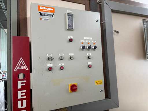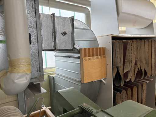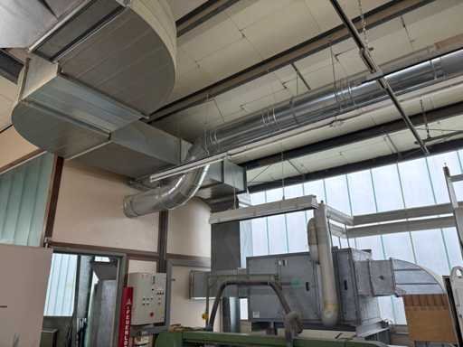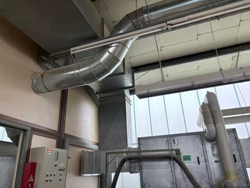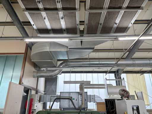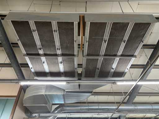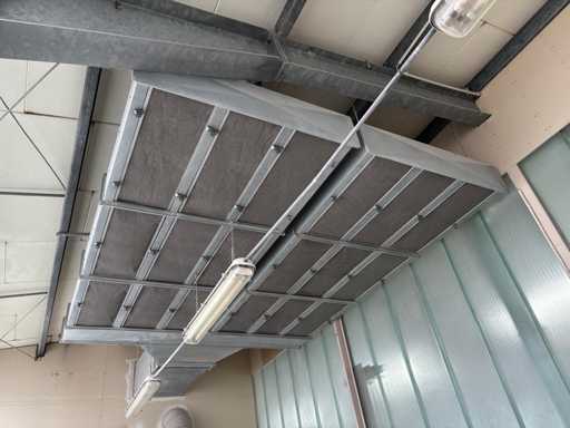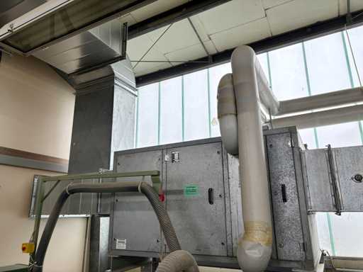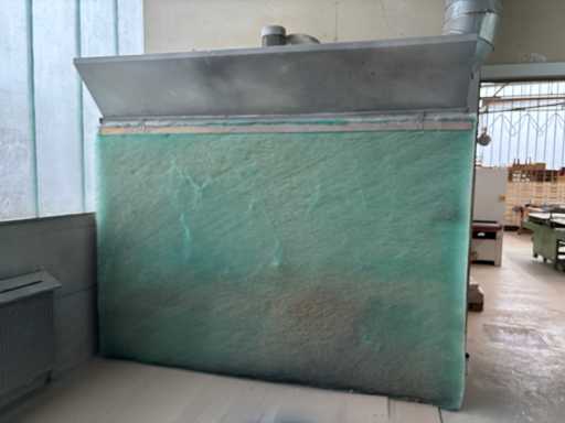 Machine No. 0472/3899, heating controller (nominal heat output approx. 142 KW, nominal air volume flow approx. 3.06 m³/s, motor approx. 3.6 KW, filter surfaces 2 pieces), paint mist extraction wall motor approx. 3.6 KW and filter area approx. 2700 x 2000 mm, control cabinet (The article is in condition as existing and untested. The article is sold from the foundation and without content / material!)