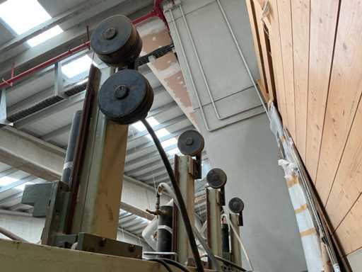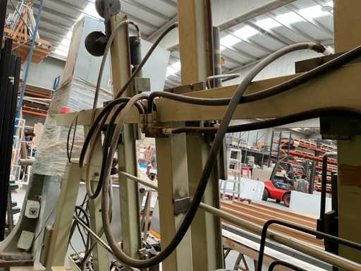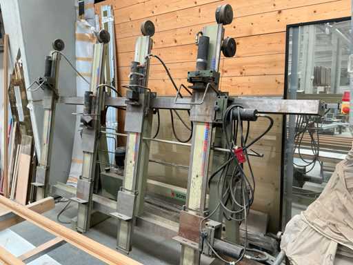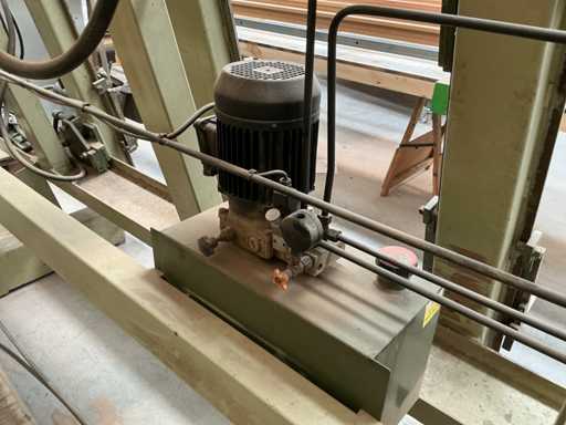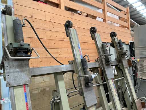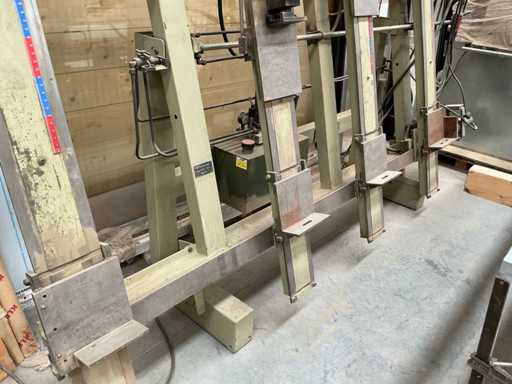 - 4 vertical hydraulic clamping cylinders, bore approx. 55 mm, stroke approx. 30 mm.