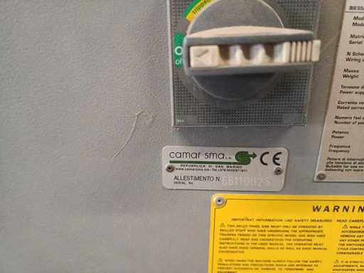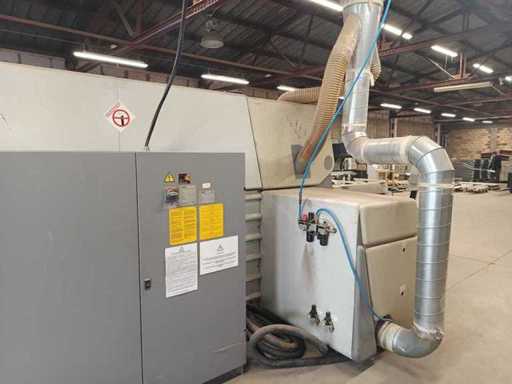 Serial Number: 77653 • Power: 43 kW • Controller: Selco OSI / NC410 • Additional Notes: Power supply 380 VAC, 3-phase, 50 Hz; rated current 81 A; pneumatic air supply 7 bar; suction air speed 30 m/sec; wiring diagram VB003; Weight: ~11,000 kg; Software: Selco OSI, NC410 (release 2.x manuals present); Total switched-on time: ~16,301 h; Total worked material volume: 133.8 m³;