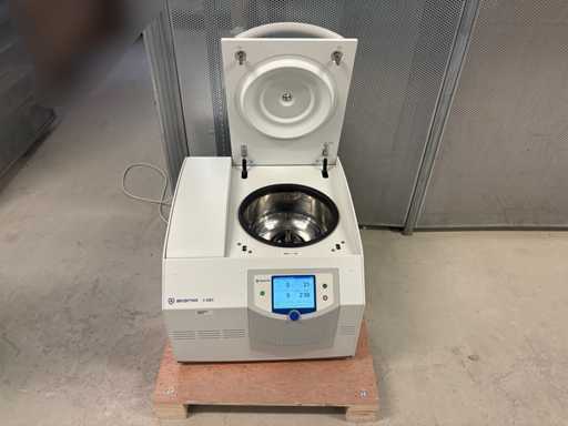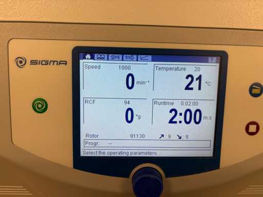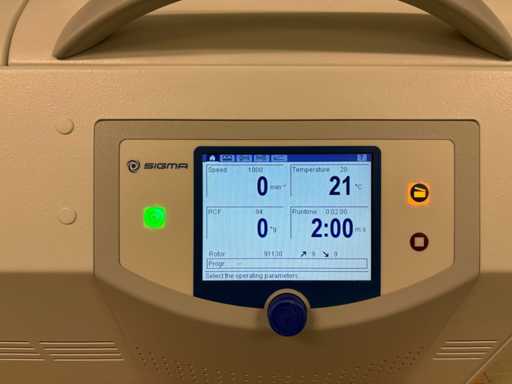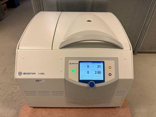 The SIGMA 3-30KS is in very good used condition. • Inner chamber: Clean, no traces of corrosion or deposits, stainless steel intake shiny and well maintained. • Rotor mount: Mechanically sound, no visible damage or wear. • Control panel/display: The color display is clear, bright and without pixel error; Buttons and rotary knob react precisely. • Case: Very well preserved with only minimal superficial signs of wear. • Technology: Device boots up, reaches target speeds and temperature stably, cooling works perfectly. • Safety: Current inspection sticker in accordance with DGUV Regulation 3, next inspection date in 2027 – thus professionally maintained and tested. The device is ready for immediate use and is suitable for demanding applications in research, diagnostics and industry.