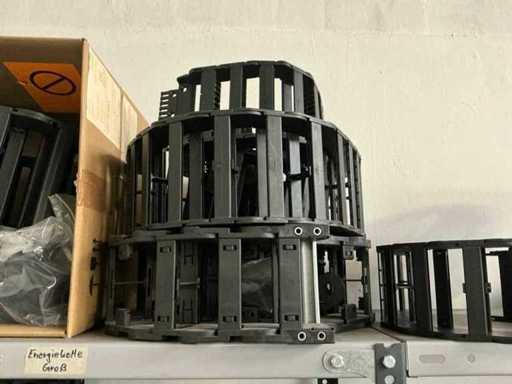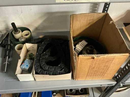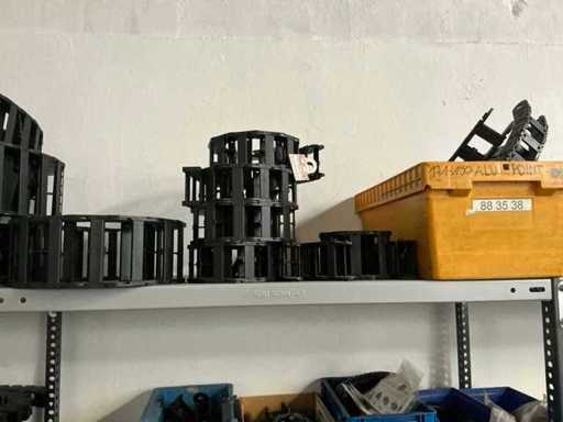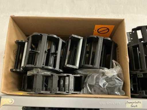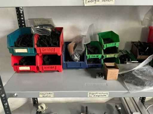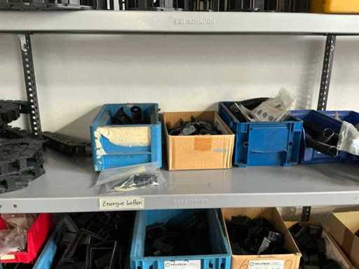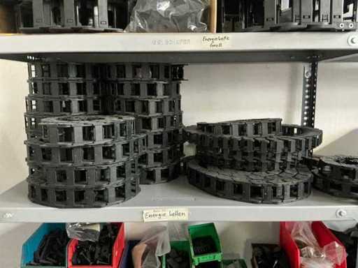 SSI Schaefer 4-Piece Shelving with Energy Chains and Machine Parts