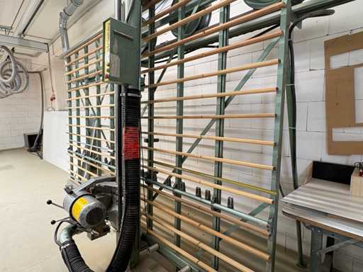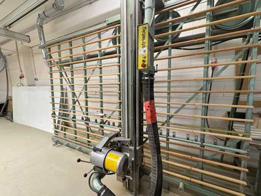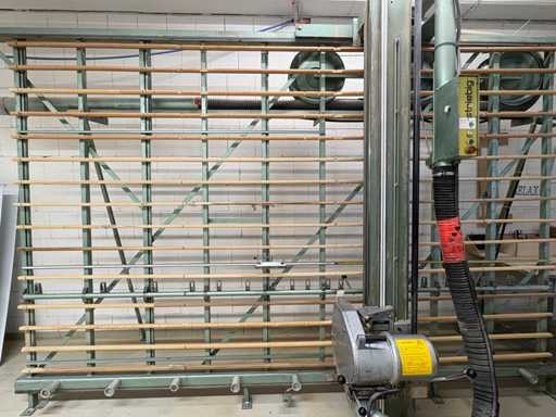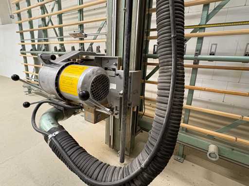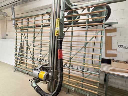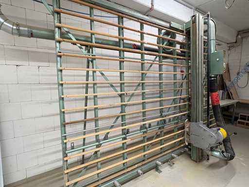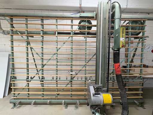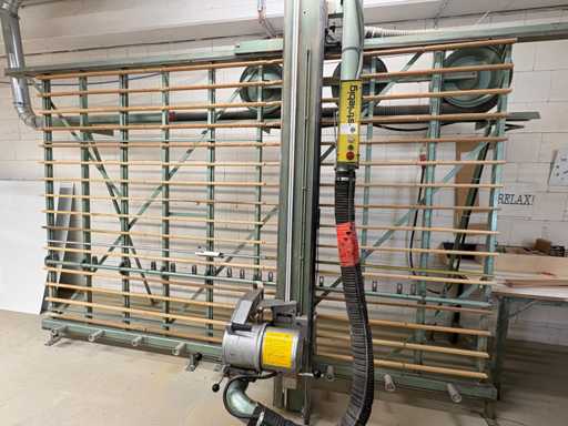 For sale is a robust vertical saw from the Swiss quality manufacturer Striebig – model 6220 A (870 SSD 2). The machine is ideally suited for the precise cutting of large-format wood and panel materials up to 5.82 m in length.