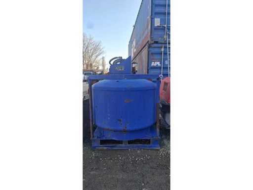 Construction: Steel tank mounted on pallet frame with lifting eyes and protective upper ring