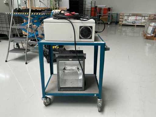 Test unit with control cabinet and trolley and test box