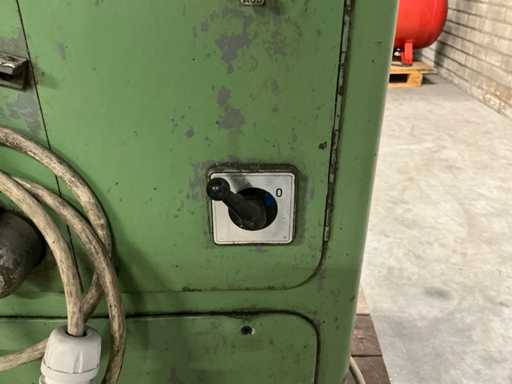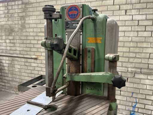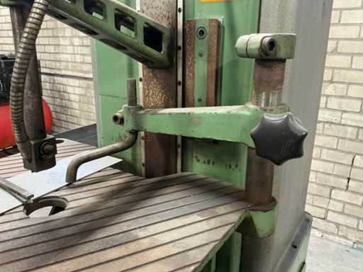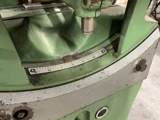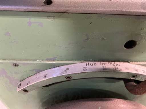 Equipped with: main switch, 380v connection, stroke adjustment, tiltable table, workpiece clamp, stroke 40-120mm, speed 60-300min, swivel 15°.