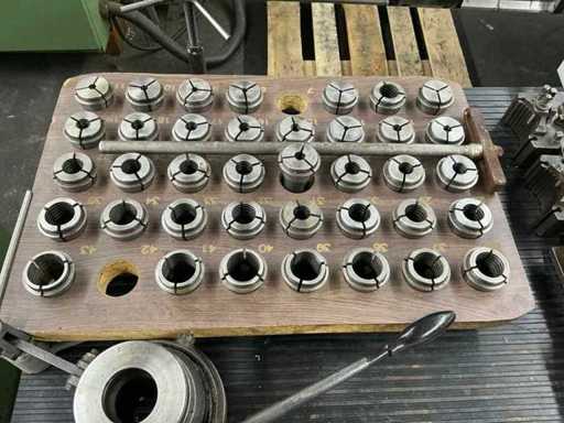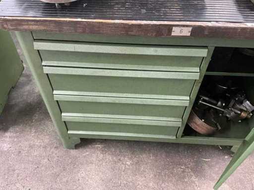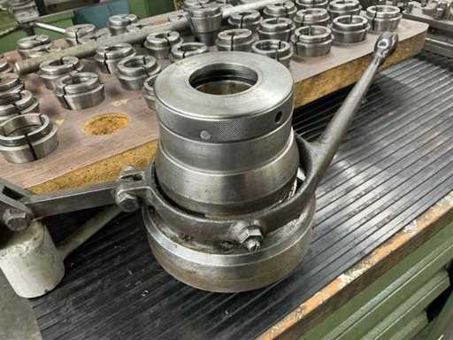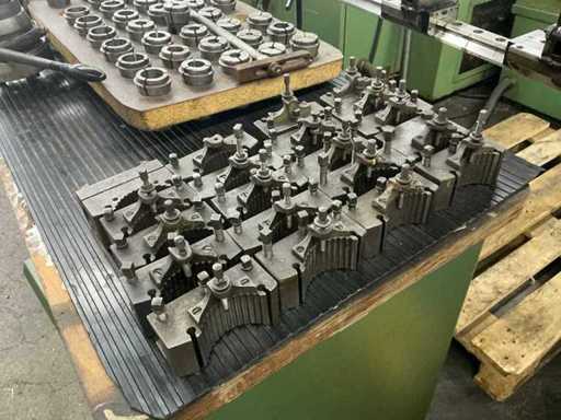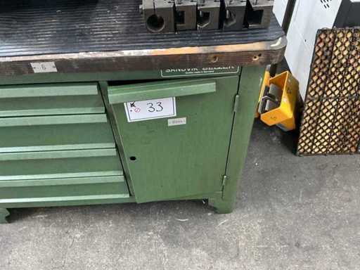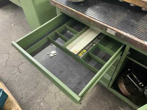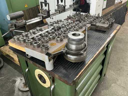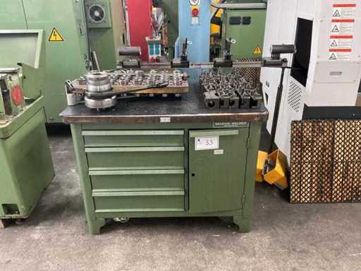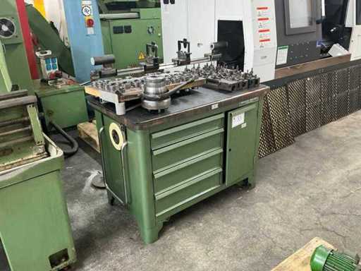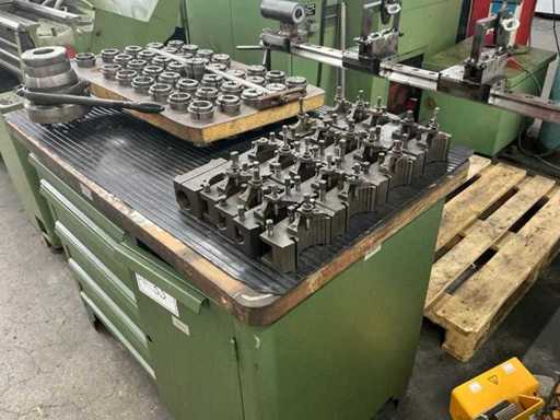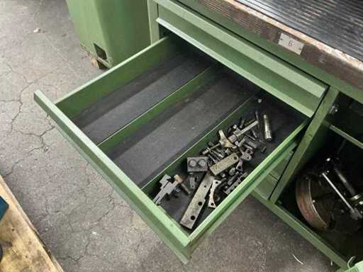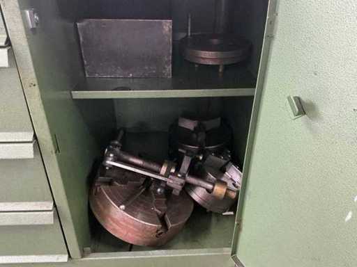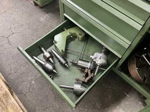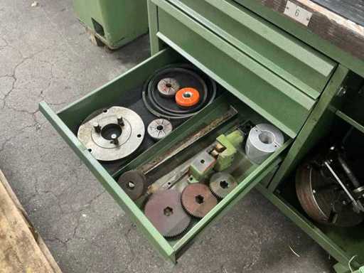 With contents consisting of various jaw chucks, spare parts and clamping devices, 4 drawers, undermount cabinet with 2 shelves, suitable for lot 32
