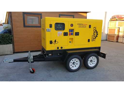 use COMPAL POWER VG-R30 electric generator, super silenced, automatic electronic ignition, 4-cylinder water-cooled Ricardo engine, engine with fuel consumption reduction system. Outputs 220/380 Volt, power 30 kW-41, 3kVA