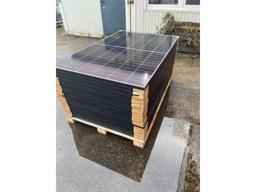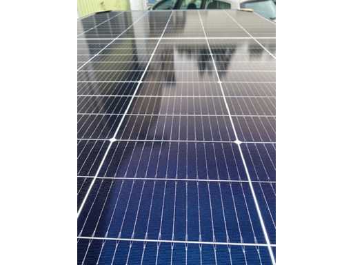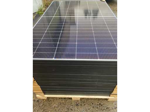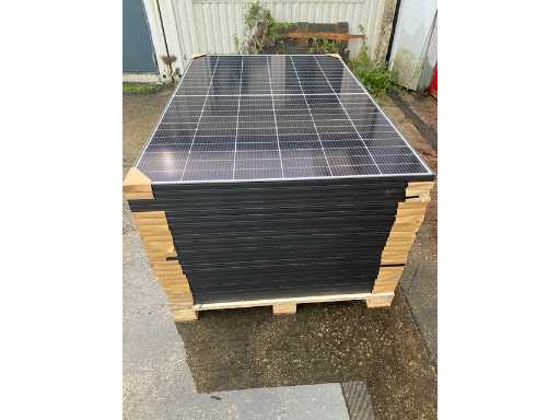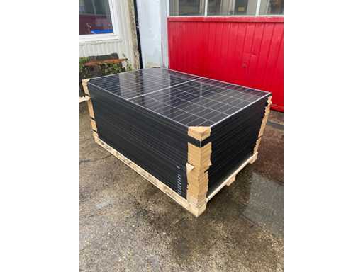 Brand new solar panels. Up to 450W permeability Excellent resistance to fire and in difficult environmental conditions 5,400 Pa snow load and 4,000 Pa wind load (test loads) Lower installation costs with increased power and efficiency. Maximum yield Total nominal output per pallet with 24 PV modules: 10,800 Wp / 10.80 KWp Technical details: Type: monocrystalline. Condition: factory new Efficiency per solar module: 22.5%. Output per solar module: 450 Wp. Total output: approx. 10,800 Wp / 10.80 KWp . PV module dimensions: 1,762 x 1134 x 30 mm. Weight: approx. 21 kg. Number of units: 24 pieces. Logistical data: Number of pallets: 1 Pallet dimensions: approx. 1,800 x 1,200 x 1,100 mm. Weight: approx. 590 kg