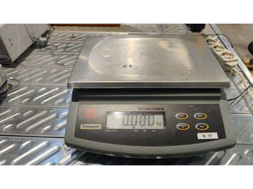 Industrial bench scale brand "Trooper", model TR6RS. Maximum capacity 6Kg, minimum capacity 40g, error +-2g.