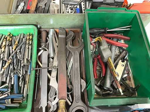 - Wide variety of hand tools: wrenches, hammers, screwdrivers, pliers, files, squares, etc.