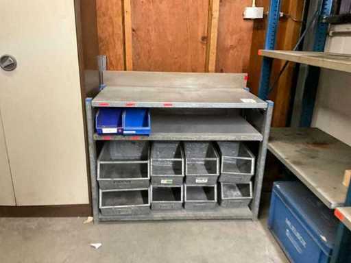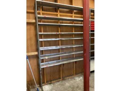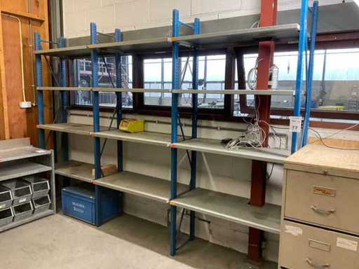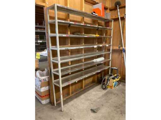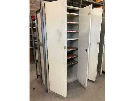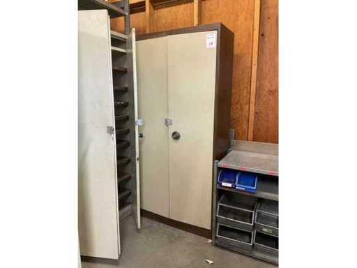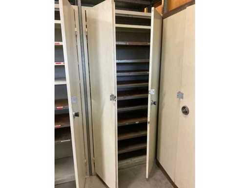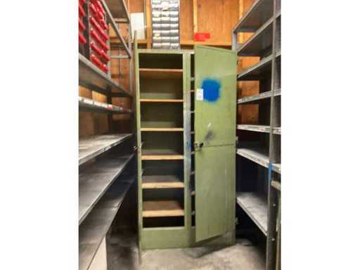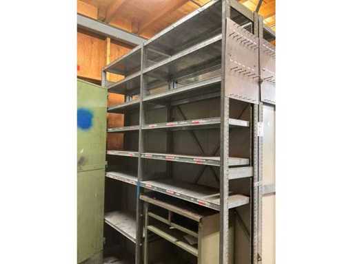 Consisting of: shelving units in various sizes, (3x) workshop cabinet various sizes, (1x) storage cabinet 109x53x218cm.
