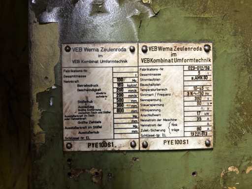 VEB ZEULENRODA PYE 100 S 1 Hydraulic Press