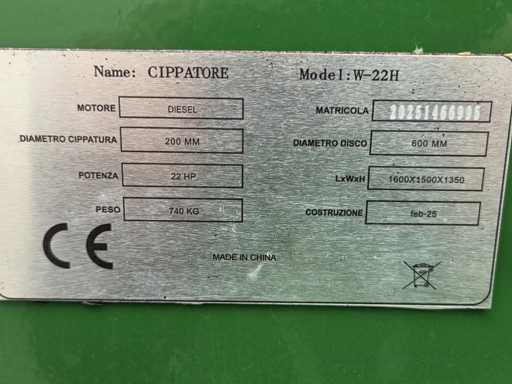 Wheeled wood chipper with diesel engine, electronic ignition, double drive roller, 200 mm