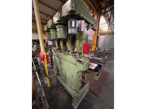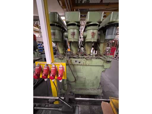 For sale is a robust multi-spindle in-line drilling machine of the STEINBACH brand, with four separately driven drill heads, ideally suited for parallel drilling processes in series production or in fixture structures.