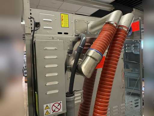 With its two superimposed hot air baking chambers, the model offers maximum flexibility and high baking capacity in a small footprint. The powerful steam generator ensures an optimal climate in the cooking chamber. The exhaust hood with filter technology effectively removes moisture and odours, which is particularly advantageous in open in-store baking areas.