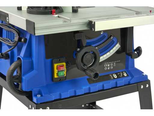 Table saw with base frame Saw blade diameter 255 mm Saw blade swivel 45 ° Cutting height 75 mm Table size 640 x 920 mm (extended) Saw blade bore 30 mm Motor power 1.6 kW Connection voltage 230 V Machine weight approx. 32 kg Dimensions (length/width/height) 720 x 1080 x 920 mm Condition: never used / new (5)