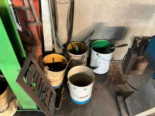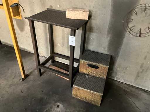 Includes metal steps, metal semi-finished products, buckets of residual metal and 3 clamps, standing in 1 warehouse compartment