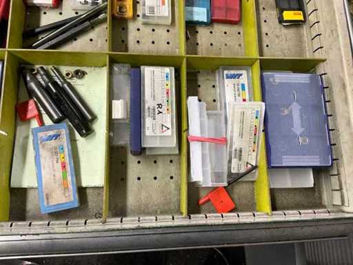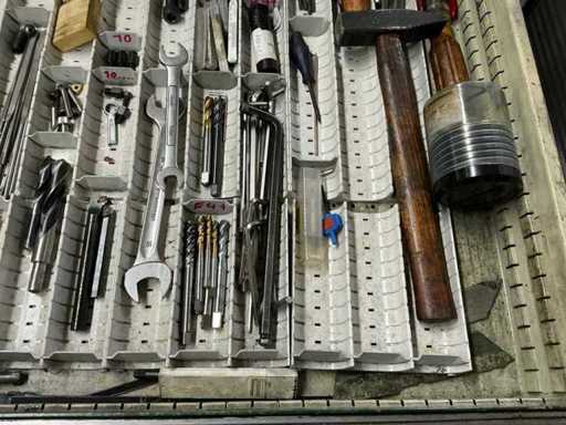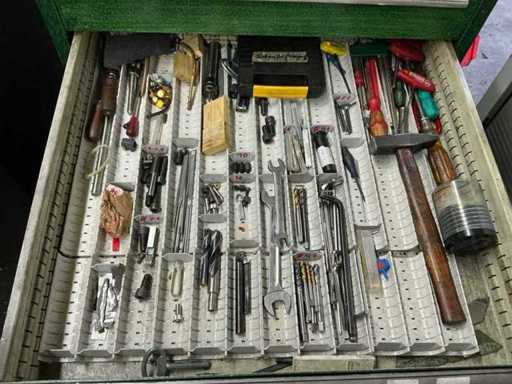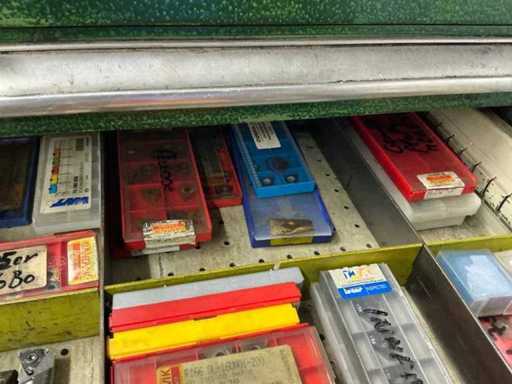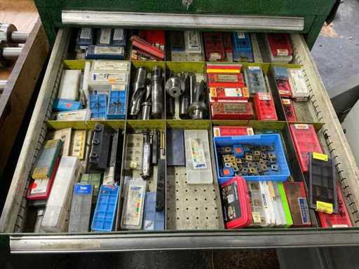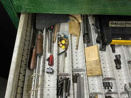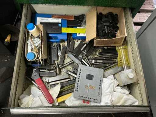 Workshop drawer cabinet including lathe accessories/tools