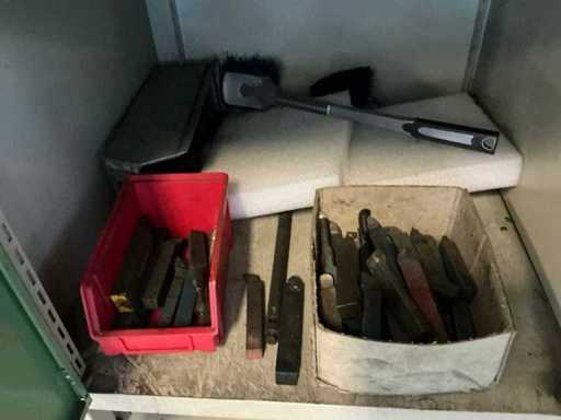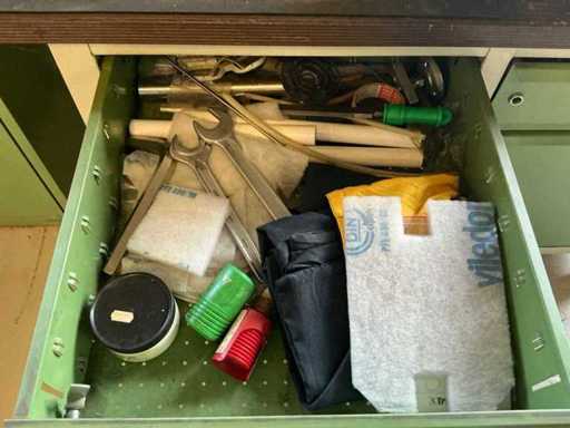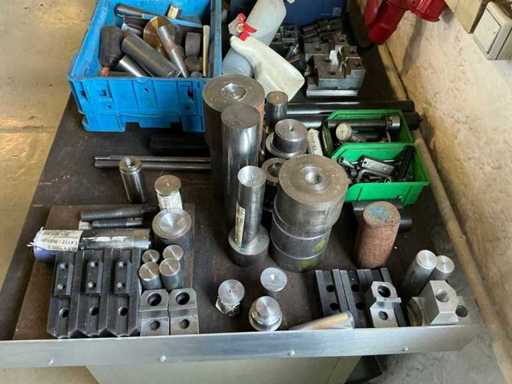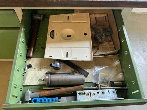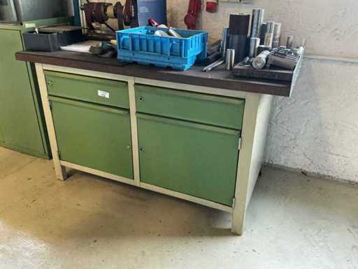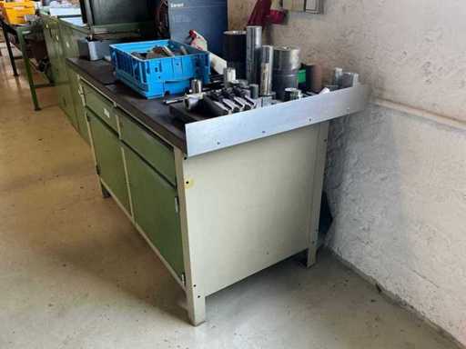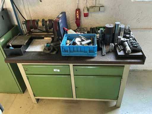 Workshop table with lathe accessories