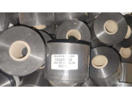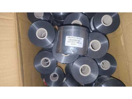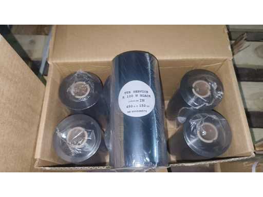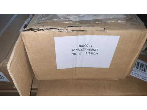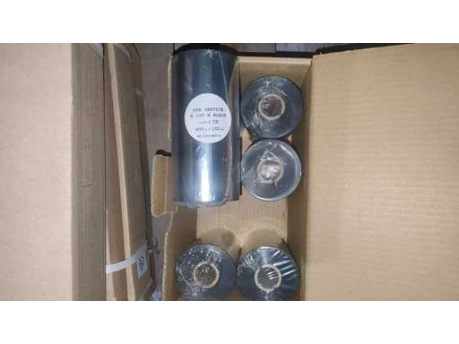 Cajas que contienen cintas de transferencia térmica para impresoras.