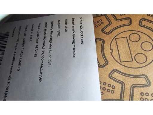 Estado: Nuevo • Notas adicionales: Incluye: 1x máquina Smart Music Boxing (SKU: 1150, Modelo QB01, alimentada por batería con pila de Li-Ion de 500mAh, 3,7V, 1,85Wh, fecha de producción 01/2025, fabricada en la RPC, fabricante Joying Trade Limited) • Múltiples artículos blandos sellados no identificados visiblemente