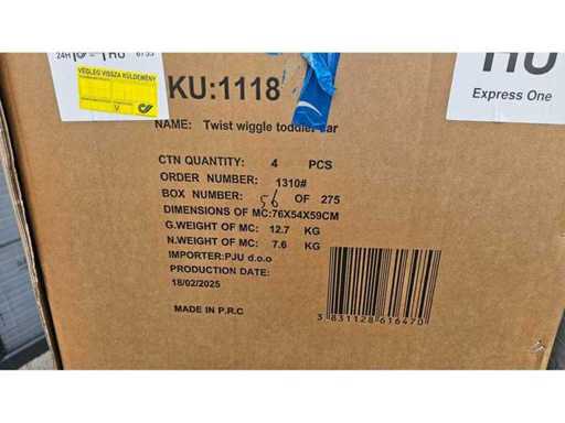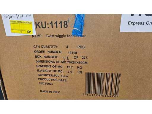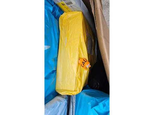 Estado: Nuevo • Notas adicionales: Este palé incluye una amplia gama de artículos nuevos para tiendas: 1x Carpa de Juego Fantasy – Rosa (SKU: 0459-PNK); 1x coche Twist Wiggle para niños pequeños (4 piezas/caja, 76x54x59 cm, G. Peso: 12,7 kg); 1x Mesilla de noche moderna (Zhongtao Furniture, SKU: 1188); 1x Escritorio Plegable (Linyi Tuohua, SKU: 1027); 1x Estantería de lavadora (SKU: 1182); 1x Parche de cuero – Negro (SKU: 0243-Bla); 1x Robot aspiradora – RofHaus ES330; 1x Cizalladoras de poda eléctrica – RofHaus; 1x Masajeador de Pies; 1x Dispositivo inalámbrico (SKU: 0990, FH-268, modelo de batería 186); 1x ventilador LED (SKU: 1075); 1x Pistola de Burbujas Cohetes (52 agujeros); además de varias unidades blandas no identificadas. Paleta completa en juguetes mixtos, muebles pequeños y aparatos electrónicos del hogar.