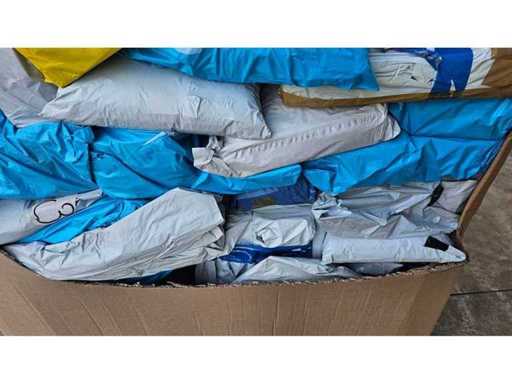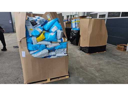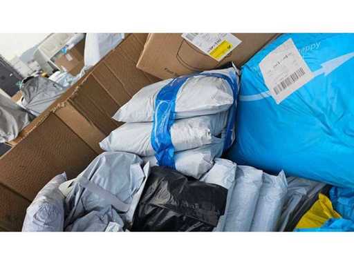 Un lote mixto de paquetes, incluyendo artículos para el hogar, textiles, pequeños aparatos electrónicos. Paquetes de varios tamaños, reempaquetados.