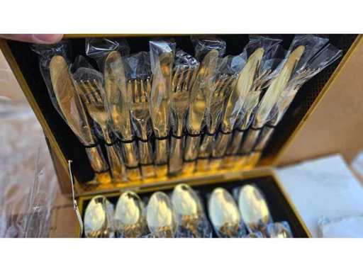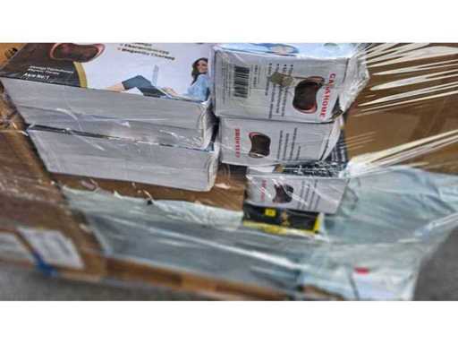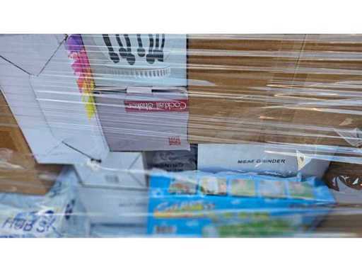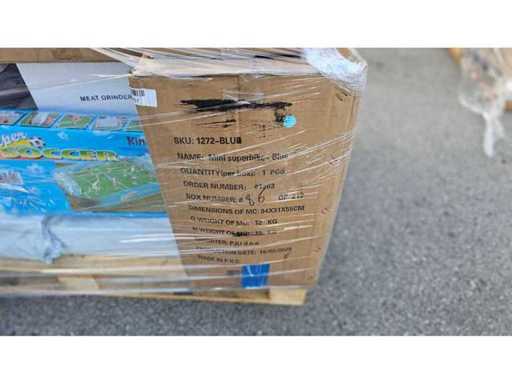 Estado: Nuevo/Sin usar • Notas adicionales: El lote incluye (1) Almohada de masaje – Coche y Hogar (Modelo: 8028), con funciones de masaje, termoterapia y terapia magnética; (2) Juego de cubiertos de acero inoxidable dorado (cucharas y cucharaditas en estuche forrado de terciopelo negro); (3) Mini Superbike – Azul (SKU: 1272-AZUL), peso bruto de 12 kg; (4) Juego de juguetes de mesa Super Soccer; (5) Picadora de carne (marca/modelo no completamente visible); (6) Juego de cocteleras; (7) Baño Portátil Móvil (Serie de serie: DMSIKH1007, fabricado por Shantou Ducky Trading Co.); (8) Organizador de tranvías (SKU: 1185).