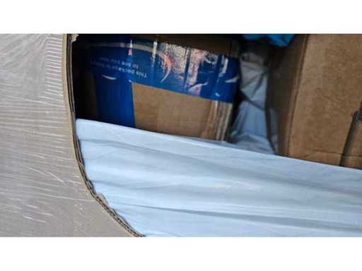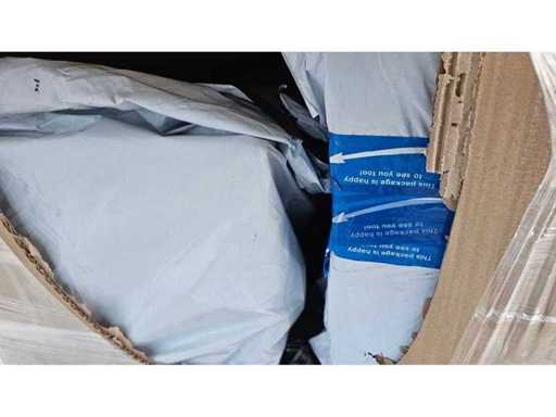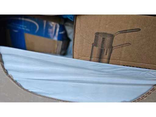 Estado: Nuevo/Sin usar • Notas adicionales: El lote incluye (1) Coche de choque eléctrico (Modelo: 518, 6V alimentado por batería); (2) Máquina de Boxeo Musical Inteligente (SKU: 1150, soft-packed); (3) Fogón metálico o parrilla redonda (visible en caja abierta); (4) Utensilios de Acero Inoxidable (cacerola con tapa de colador, imagen impresa en la caja); (5) Paquetes blandos (probablemente textiles o electrónicos); (6) Varias cajas de cartón con contenido no claramente señalizado.