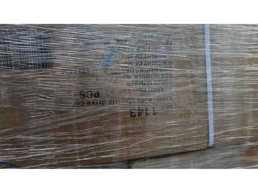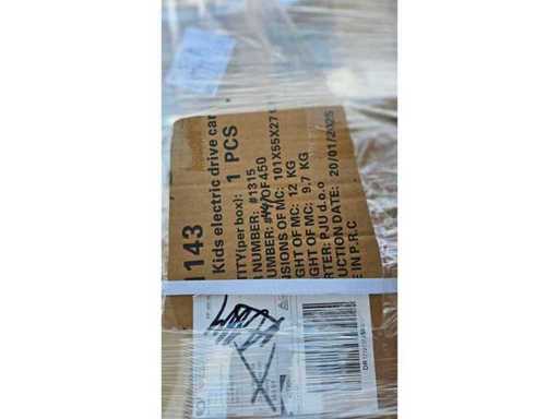 Estado: Nuevo/No utilizado • Notas adicionales: Palé mixto de bienes de consumo. Artículo en caja claramente visible: Coche eléctrico para niños (1 pieza por caja, dimensiones de la caja aprox. 101×55×27 cm, peso general aprox. 12 kg, N.W. aprox. 9,7 kg, fecha de producción 20/01/2025, fabricado en R.P.C.). El contenido restante consiste en varios paquetes envasados en forma de brando (azules, gris, bolsas de polietileno azul claro) y cartones adicionales sin marcar; cantidades y modelos exactos no completamente visibles. • Descripción general: paleta mixta de excedente.