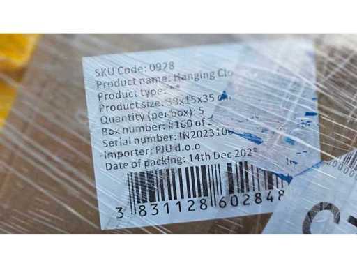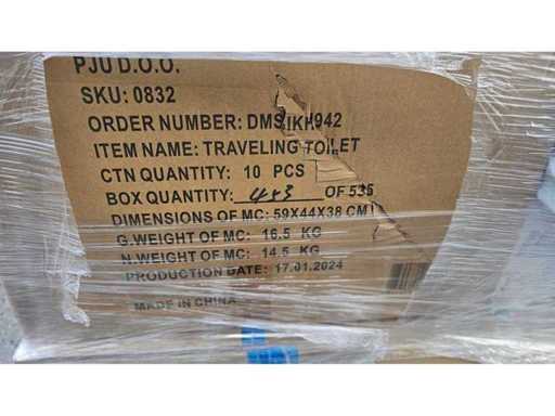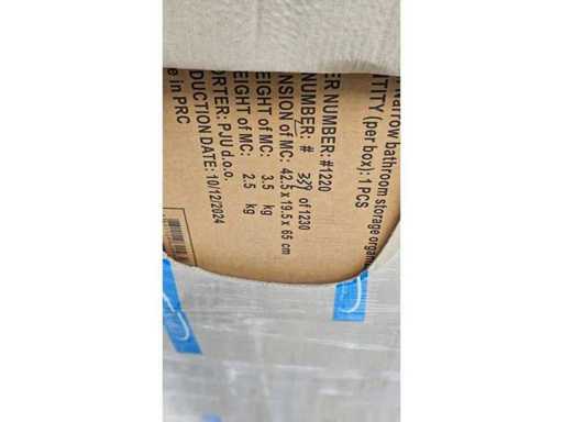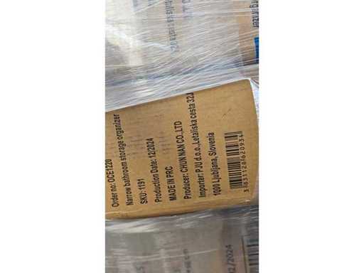 Estado: Nuevo/No utilizado • Notas adicionales: Palé mixto de bienes de consumo que incluye: Inodoro itinerante (SKU: 0832, 10 piezas por caja, tamaño del cartón 59×44×38 cm, G.W. 16,5 kg, N.W. 14,5 kg, fecha de producción 17/01/2024, fabricado en China, ); Organizador de Almacenamiento de Baños Estrecho (SKU: 1191, fecha de producción 12/2024, productor Chunnan Co., Ltd); Organizador de ropa colgante (SKU: 0928, tamaño del producto aprox. 38×15×35 cm, 5 piezas por caja, embalado 14/12/2023); Funda de sofá (15 piezas por caja, tamaño del cartón aprox. 48×34×66 cm, G.W. 12 kg, N.W. 11 kg, fecha de producción 12/12/2024); Además, varios paquetes blandos (bolsas de poliuretano amarillas, azules, grises). • Descripción general: paleta mixta de excedentes para el hogar y el estilo de vida.