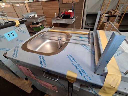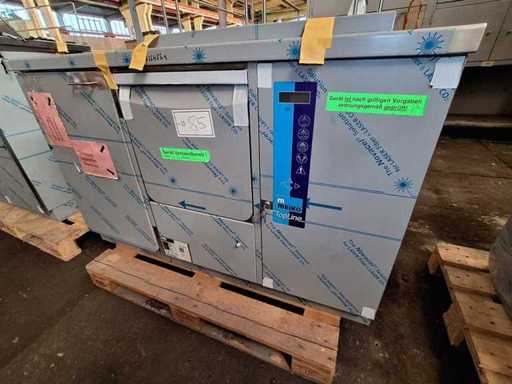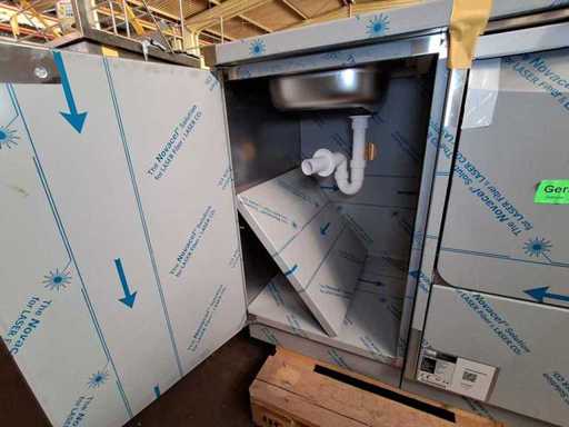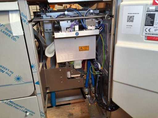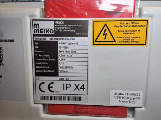 Meiko Dishwashing Line + Disinfection - Automatic Topline 40, built in 2020, with a spout basin + sink base cabinet + wall shelf, ready to connect, VDE tested