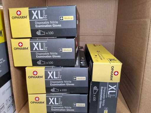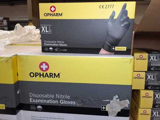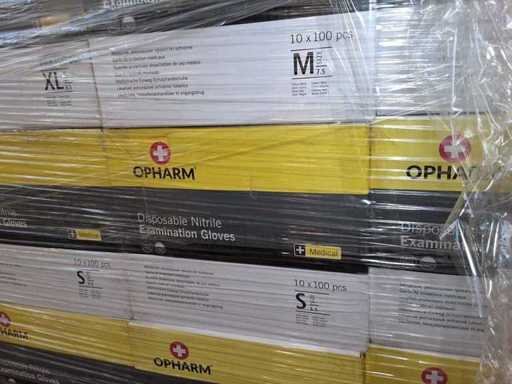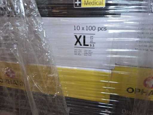 Pallet Medical Disposable Protective Gloves OP Harm, 1 pallet = 59 carton of 10 packs each a = 100 pieces = total 59000 pieces/pair, pallet mixed S, M, XL Color Black
