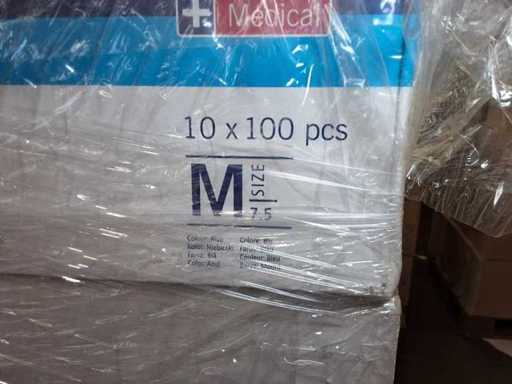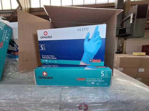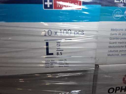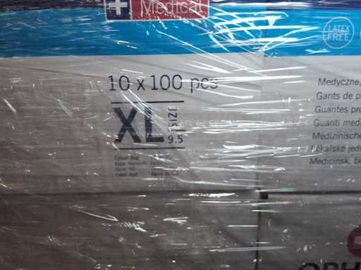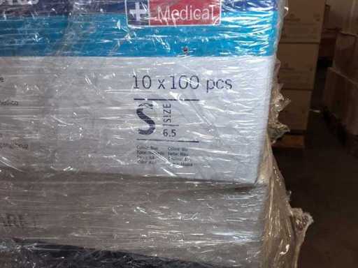 Pallet Medical Disposable Protective Gloves OP Harm, 1 pallet = 65 carton of 10 packs each a = 100 pieces = total 65000 pieces/pair, pallet mixed S, M, XL Color Blue