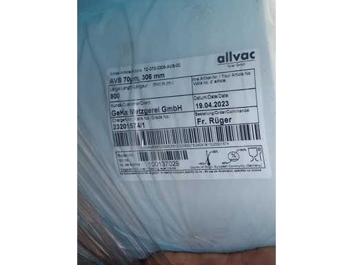 Pallet sealing film ALLVAC AVB ym / 306 mm, roll each 800 m, total 16 rolls, top film / bottom film for vacuum + MAP Packaging sealing film