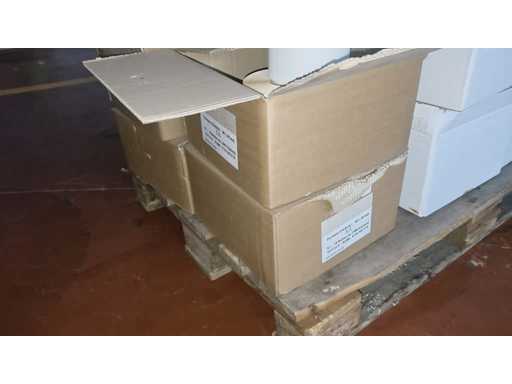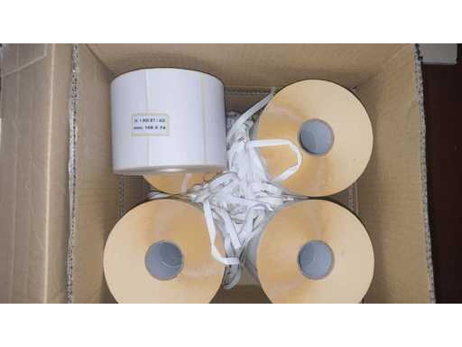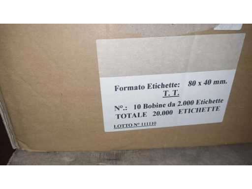 Nº 2 cajas cada una con unos 10 rollos de 2.000 etiquetas en formato 80x40mm, para un total de unas 40.000 etiquetas.