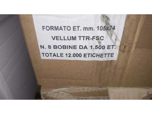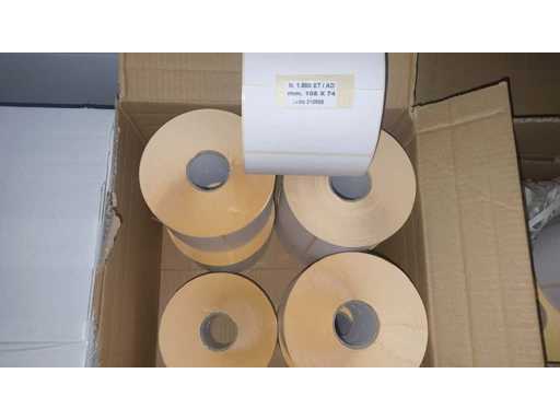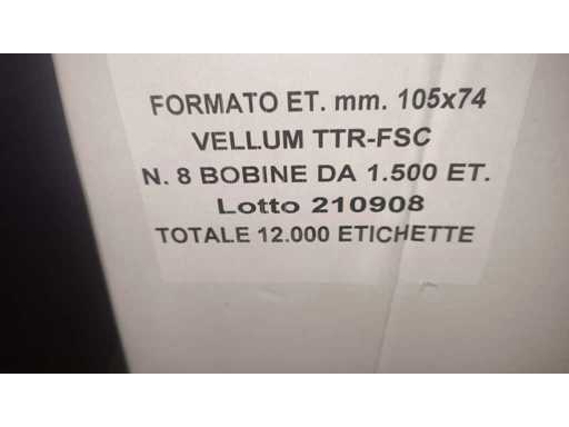 Cajas nº 10, cada una con unos 8 rollos de 1.500 etiquetas, formatean 105x74mm, para un total de unas 108.000 etiquetas.
