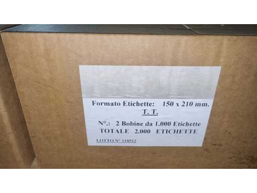 Cajas nº 6 cada una con 2 rollos de 1.000 etiquetas de tamaño 150x210mm, para un total de 12.000