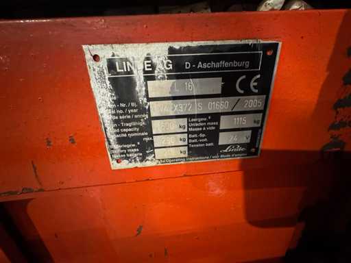 01/2020 Servicio + UVV 12/2026 Linde L16 1,600 kg Hormiga de transpaletos 8,067 horas no levanta