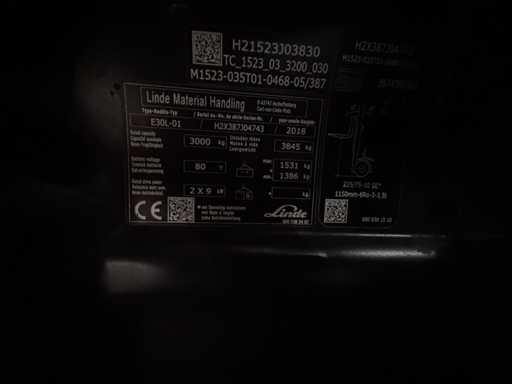 02/2024 Servicio+UVV 10/2026 Linde E30 3.000kg Triplex 3.+4. Válvula 160cm Ajustador de Horquilla Carretilla Elevadora Eléctrica 7.350 horas