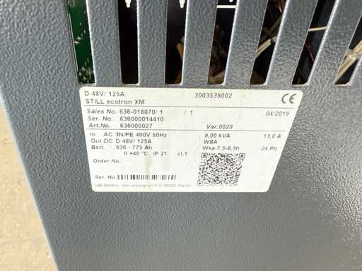 04/2019 Still Ecotron 48V 125A 636-775Ah Carretilla elevadora Cargador de transpaleta