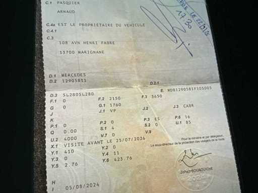 Start immediately. Manual 5 Vitesse, autom. Air conditioning, hard and soft top (new), original rims 17" Lorenzer (tyres ok), leather black interior in very good condition.